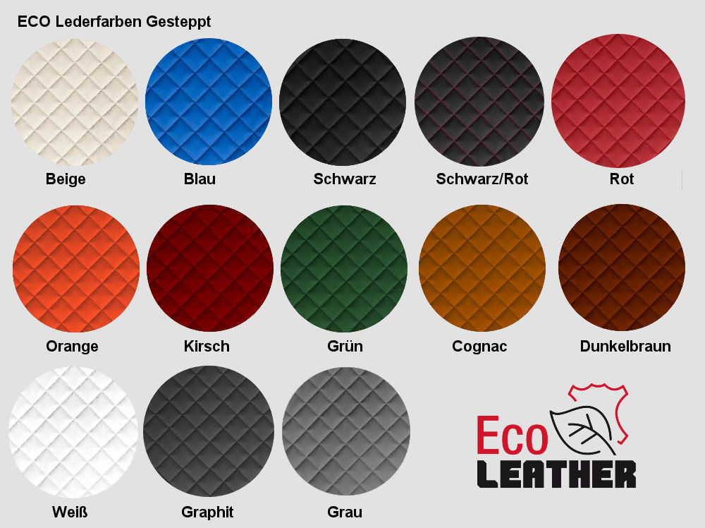 Die Seiten sind mit hochwertigem ECO-Leder bezogen, erhältlich in gesteppter und glatter Ausführung. Dies verleiht den Bezügen nicht nur eine luxuriöse Optik, sondern sorgt auch für zusätzliche Strapazierfähigkeit und einfache Reinigung.